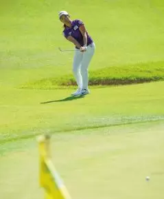 最終日はワンオンを狙えるように280ヤードになっていた9番ホール。約60ヤードのアプローチは左足下がりの難しいライだったが、畑岡はキャリーでグリーンギリギリに落として、長いランを使って30センチにつけるスーパーショットを見せた。