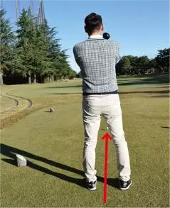 ドライバーの場合、ボールの位置は左胸の前が基本ですから、左胸からクラブを真っすぐ下ろした位置に合わせてボールをセットすればOKです。ボールの位置の間違いがなくなりますし、簡単でしょう。