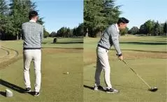 - 1メートルのパットでもラインに対して平行に立てば、体がボールから離れている分だけ体はカップの左を向くことになる