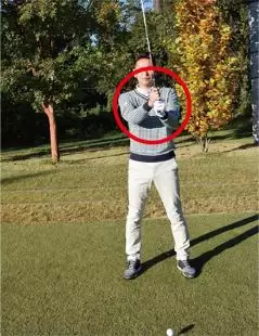 - アドレスを作る一番のポイントは、「最初にクラブを左胸の前で持つ」こと