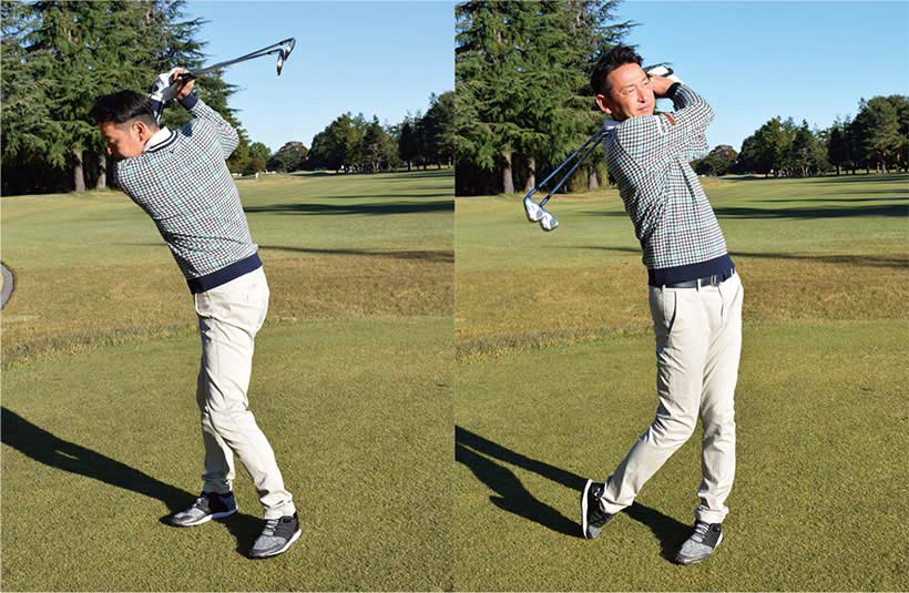 どちらの素振りも、フィニッシュでバランスを崩さないように左足だけでも立てるフォームをしっかりと決めることも大切です。