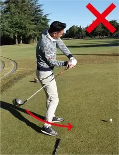 ダウンスイングで大きなタメをつくろうとする人は、手がどんどん先行して体から離れるため、クラブが寝た状態で下りてきてフェースが開いてしまうことになります。
