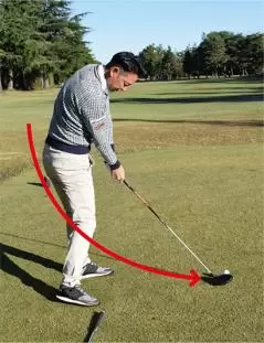 この練習を繰り返すと重力を利用してクラブにスピードをつけながら振り下ろす感覚や、クラブをインサイドから適正の角度から振り下ろしてくるイメージがつかめます。