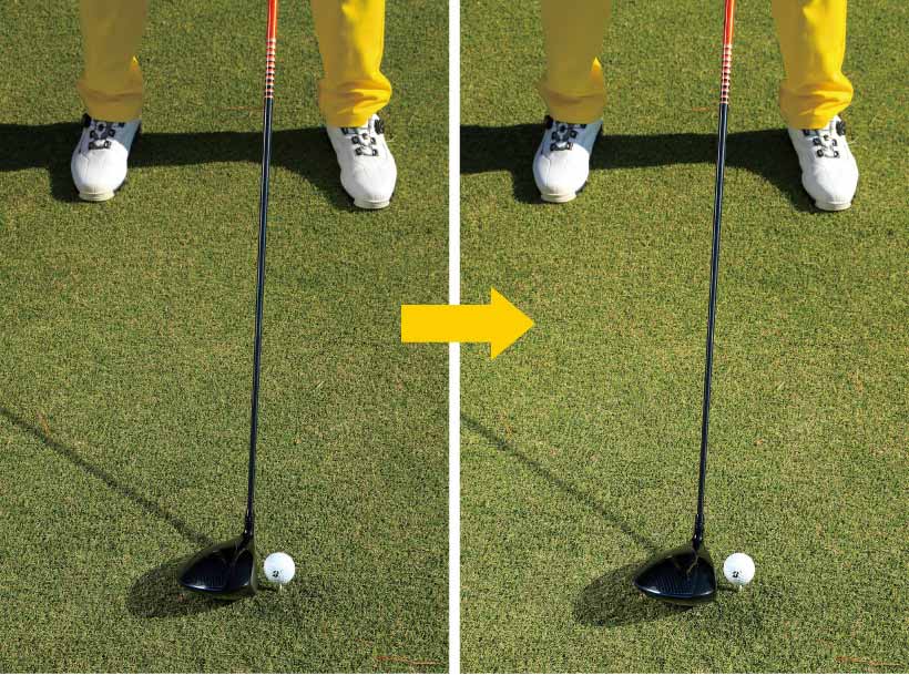 これをラウンド中に直すのはなかなか難しい。オススメはアドレスだけ変えてそのまま振ることです。ポイントはフェースを閉じること。フェースが少し閉じた状態でグリップし、フェースを左に向けてアドレスするだけ。違和感があるかもしれませんが、このセットアップでスイングを変えなければスライスはピタリと止まります。