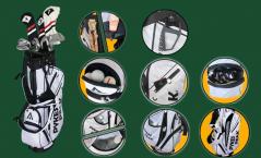 撥水性の高い生地を使用し汚れにも強い加工も施している。さらにクラブ全体を覆う着脱可能のフードを同梱しているので、急な悪天候でもクラブを保護することができる。