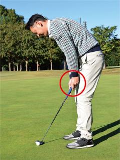 小さい振り幅でも腕や手を使わず、体の回転を主体にしてストロークすることが重要です。そのためにも両手を少し浮かせてハンドアップ気味に構えて、手首を固定しやすいアドレスを作っておくことが大切です。