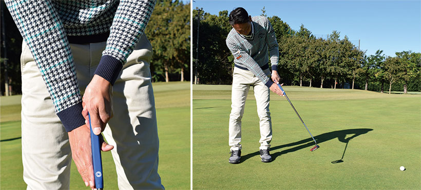パターの名手たちに割合多く見られるクロスハンドグリップも試してみる価値アリです。