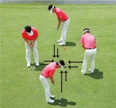 練習方法:カップから1メートル前後の距離を4方向からパッティング