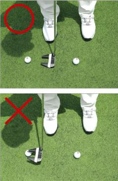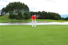 グリーンの速さを把握したいため、傾斜に左右されないよう、最初はできるだけ平らな場所で確認しましょう。