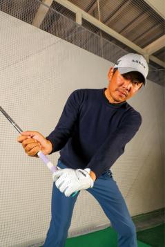 右手で振る意識。下から握った右手でクラブを引き上げるだけでコックが入る。左手の甲とフェース面の向きは同じ。