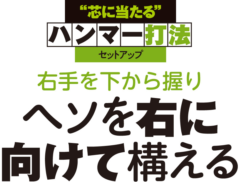 セットアップ|右手を下から握りヘソを右に向けて構える