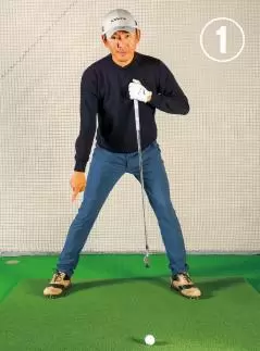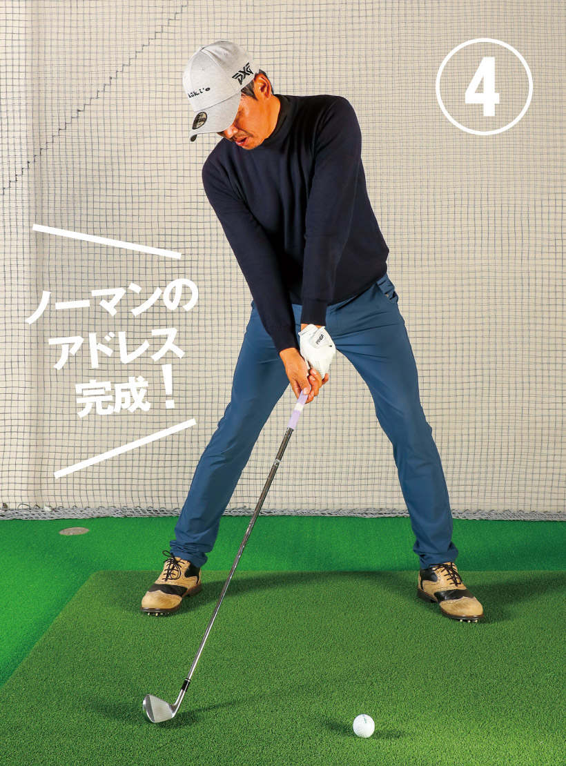 下から握る右手、超ワイドスタンスに伸びた腕、ボールのはるか右においたヘッド……。変則に見えるアドレスには真っすぐ飛ばす極意の塊だ。