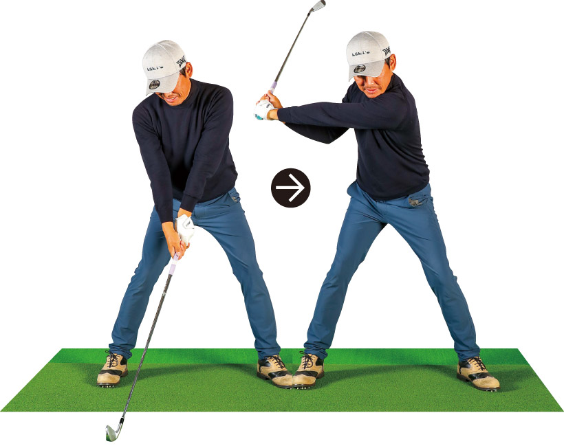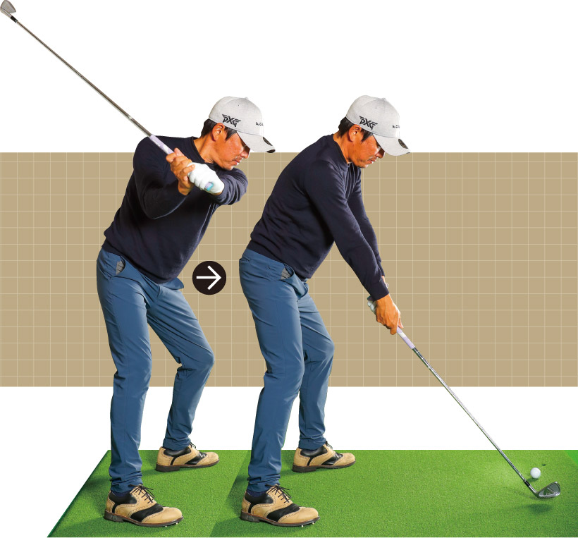 バックスイング&切り返し|右手でクラブを引き上げ小さなトップを作る
