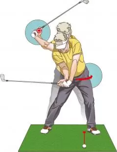 「浅いバックスイングからの方が腰を大きく動かせる」とノーマン。バックスイングでは体の回転を意識しなくていい。