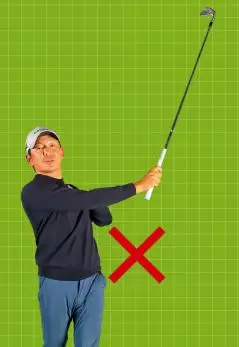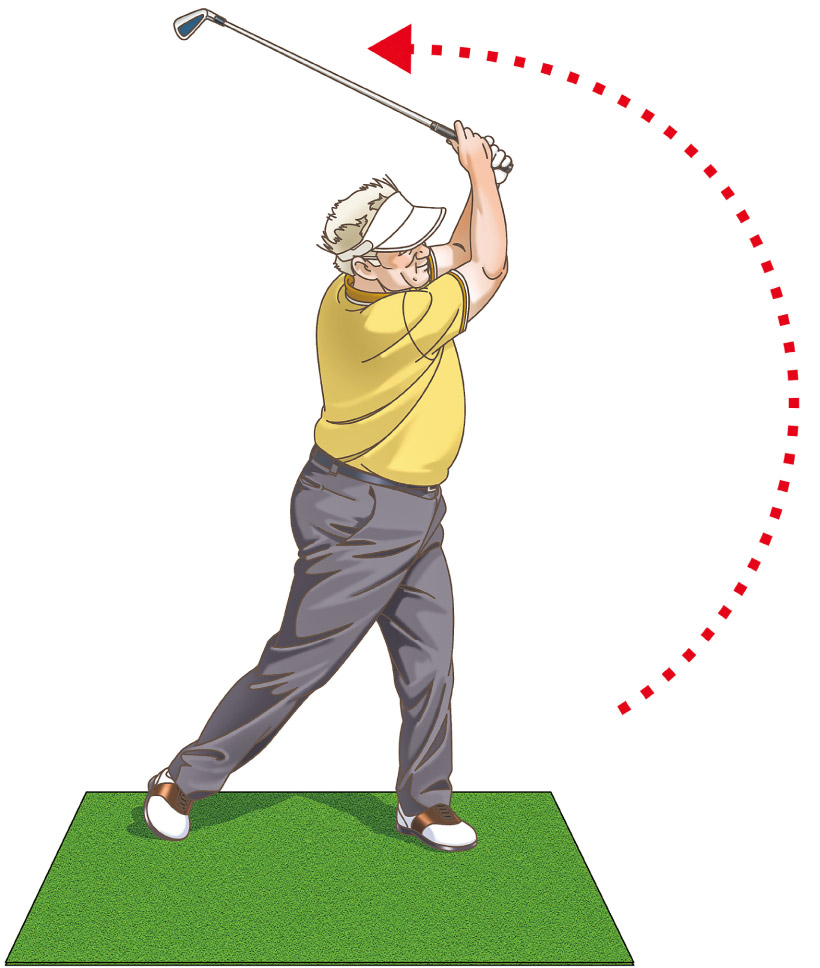 体の可動域が狭まって回転が少なくなると打って終わりのスイングになるが、クラブが高い位置に収まってくれば問題はない。