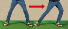 ベタ足で右から左に体重を移動する