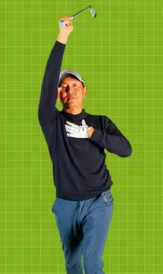 その一つの表れがフィニッシュでクラブが高い位置にあること。体の回転量が少ない中でクラブが正しく動くとこのカタチになります。これは力が向かっている方向にクラブが動いている証拠で、ジャック・ニクラス、ゲーリー・プレーヤーなどレジェンドはみんなこう。フィニッシュが低い位置にくるのは体がよく回っているから。無理に低い位置にするから出力方向が狂うのです。