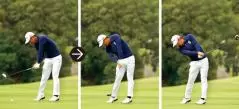 天才的ボールストライカーと言われるノーマンですが、やっていることはいたってシンプル。右手でハンマーを持つようにクラブを持ち、ヨコから釘を打つように振っているだけです。