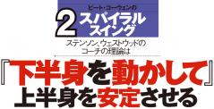 ヘンリク・ステンソンのように、左右の足の曲げ伸ばしを積極的に使い、股関節をタテに切り上げることで、軸の横ずれや上体の揺れを抑えて打つのが、「スパイラルスイング」の特徴。