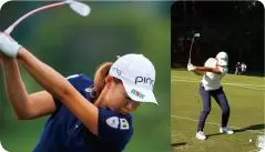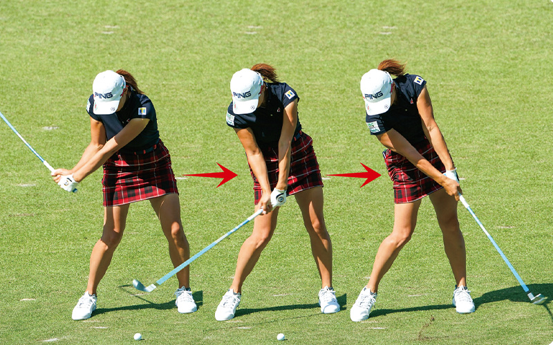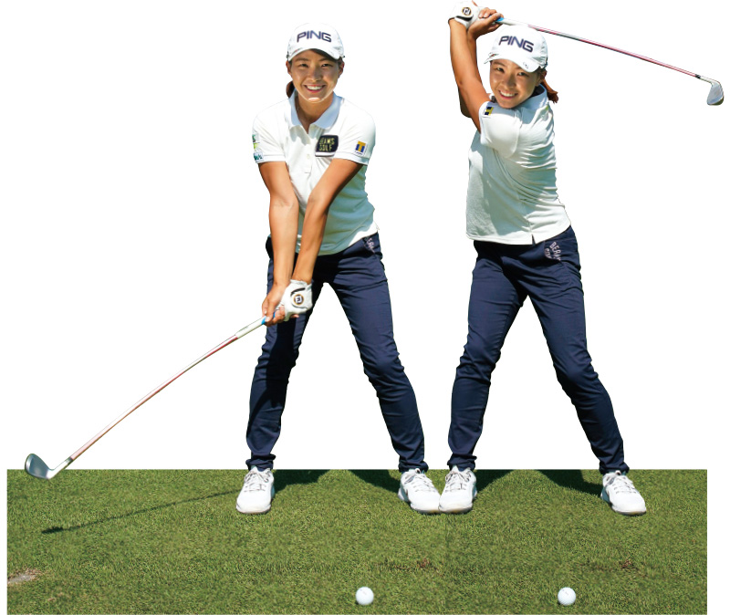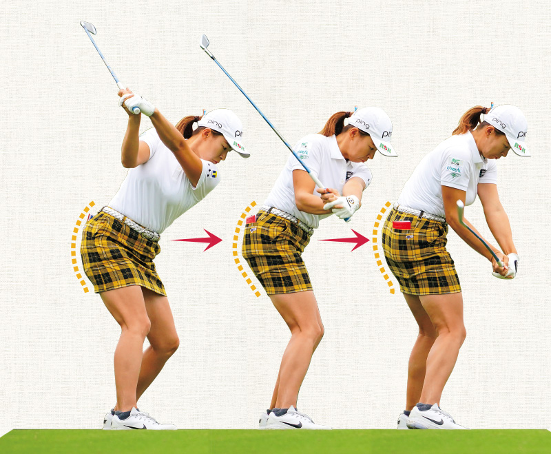 渋野 「頭を抑える練習をしたり、体が伸び上がらないようにしたり、お尻の動きも意識して練習してきましたね。それをやっているうちに、私はスイングが変わったと思います」