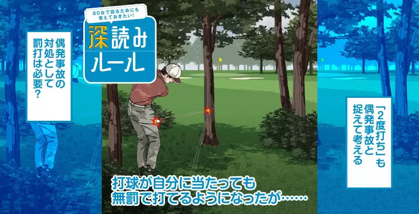 打球が木に当たってしまったのは、想定内だったとしてもミスショットの範疇だが、これだけならもちろんペナルティーの対象にはならない。問題は〝偶然に〟打球が自分の体に当たったことだ。これは〝事故〟と呼べる。