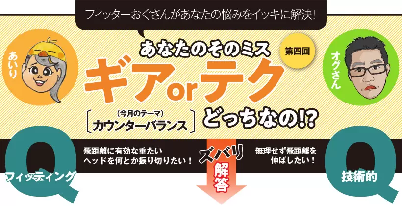 オグさん 同じスピードでインパクトできれば、重い方が衝突エネルギーは大きくなるからね。しかしどちらも飛距離アップの可能性を高める効果はあるけど、デメリットもある。長尺はスイング半径が大きくなるためミート率の低下につながるし、重いヘッドはクラブとしてのバランスが悪くなるので、タイミングよく振れなくなる。でも進化した最近のクラブは、どちらのデメリットもかなり軽減してくれるようになっているんだよ。