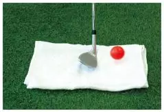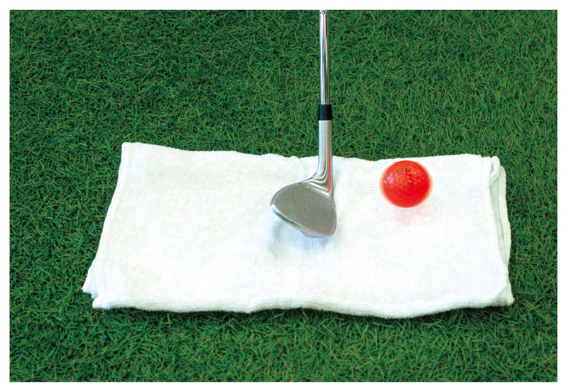 ダフるとタオルが動いたりするので、ボールをクリーンにとらえる練習になります。これからの冬場の季節にありがちな、薄芝からのアプローチにとても有効です。