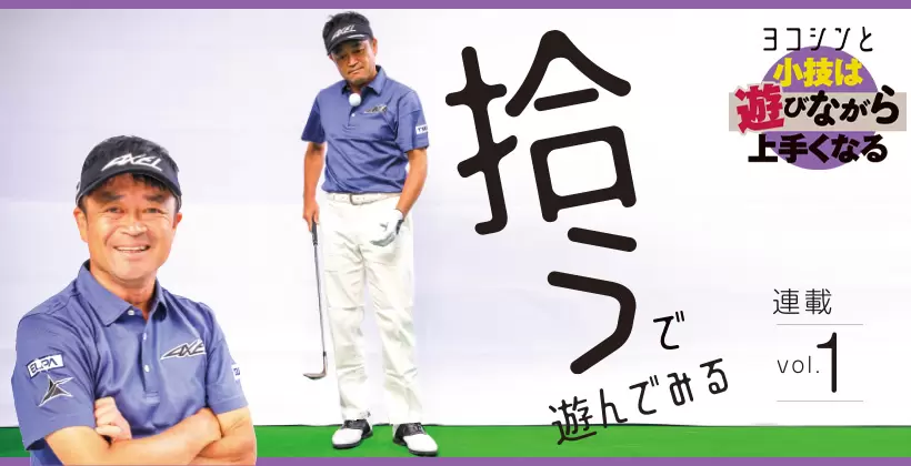 ゴルフにまつわる“遊び”、にヨコシンがレッスンを加えることで小技を学んでしまおうという目論見。一回目の今回は、サンドウェッジの球拾いを通じて、スウィングの肝である、腕の回旋運動を激しくゲットだ!