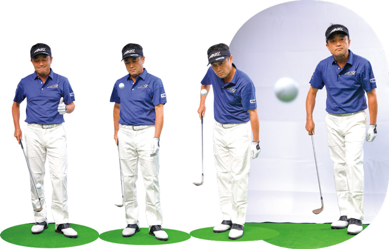 横田 リフティングでは、肩と手首を固めておいて、落ちてきたボールがSWのフェースに当たるタイミグがSWのフェースに当たるタイミグでヒジを緩めてポーンとボールを真上に上げていきましたよね。