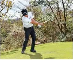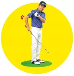 ヒジが上手く緩まないというなら、上半身とフェース面は完全に固めてしまい、ヒザをバネのようにつかってリズムを作るのもOK。