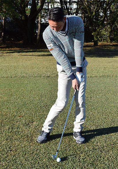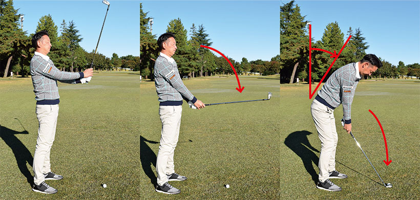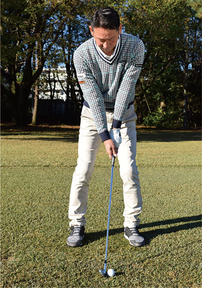 こうした手順でアドレスを作ると体とボールの間隔を一定に保ちやすく、常に同じ姿勢で構えやすくなります。