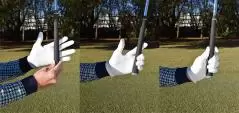 指に近いところで握れば力を入れなくてもグリップが緩みませんし、手首やヒジ、肩などの関節を柔らかく使いやすくなり、クラブをスムーズに振れます。