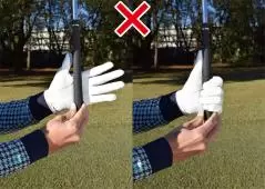 - 上体が右や左に傾きすぎるのはグリップの握り方を間違えているため
