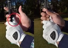 まずはクラブを長く持たないで、グリップエンドを1インチほど余して握りましょう。グリップエンドが左手に隠れるほど長く持つとスイング中にグリップが緩んで、クラブヘッドの軌道が安定しにくいためです。