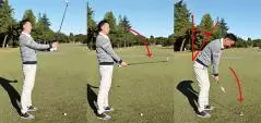 手順の2で両腕とクラブの重さで両ワキはほどよい締まりが感じられますが、この締まり感覚が体と腕が同調したスイングを引き出しくれます。