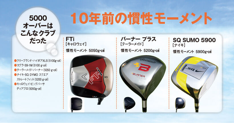 10年前は現在と比較して、ヘッドの製造技術が低かったために、低重心、大慣性モーメント、大きな重心角の3つを同時に達成することができなかった。このために、「曲がらないけれどあまり飛距離が出ない」あるいは「曲がらないはずなのにスライスする」といった現象が起こり、一過性の設計となってしまった。その後、「高打ち出し・低スピン」を求めた結果ヘッドの製造技術が進化し、大慣性モーメントでも、低重心、大きな重心角を持つヘッドを製造することが可能となり、慣性モーメント5000超の大慣性モーメントドライバーが復活している。