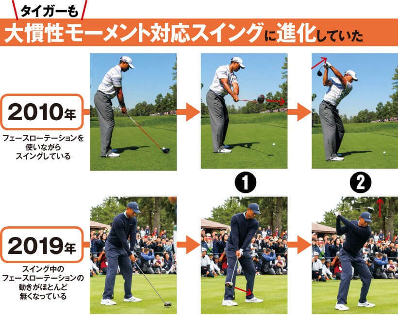 フェースの開閉を抑えたスイングに変わり、“飛んで”“曲がらない”大慣性モーメントドライバーの特性を生かしたこともタイガー復活を支えた要因のひとつです。