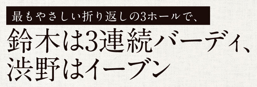 最もやさしい折り返しの3ホールで、鈴木は3連続バーディ、渋野はイーブン