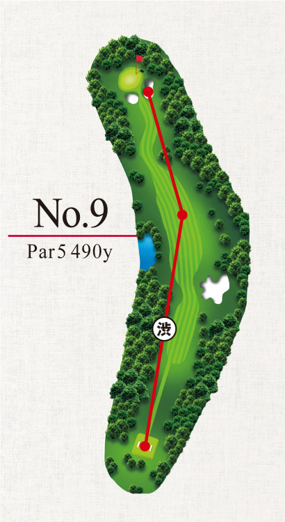 スコアを伸ばせず、スタートから8番ホールまでパーを続けていた渋野は、9番ホールでは大ピンチを迎えてしまった。2打目で積極的にツーオンを狙ったが右のガードバンカーにつかまってしまう。さらに、そのバンカーショットをアゴに当ててしまい、もう1打をバンカーから打つことになる。結局はこのホールをパー。続く10番でもピン奥から約2・5メートルのバーディパットが決まらずにパー。このパットについて渋野は、