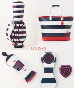 23区GOLFの新作ゴルフグッズはとにかくカラフルでポップ!キャディーバッグからヘッドカバー、ボストンバッグ、マーカーまで全部おそろいで揃えたくなるグッズでラウンドを楽しく彩ってくれるものばかりだ。