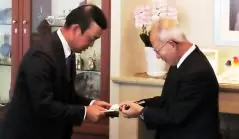時松新会長は早朝福岡から移動して贈呈式に出席