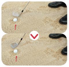 ボールの手前(右側)の砂が盛り上がっている場合、フェースとの間に砂が入るのでスピンがかからず、グリーン上でランが多くでてしまう。