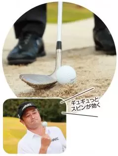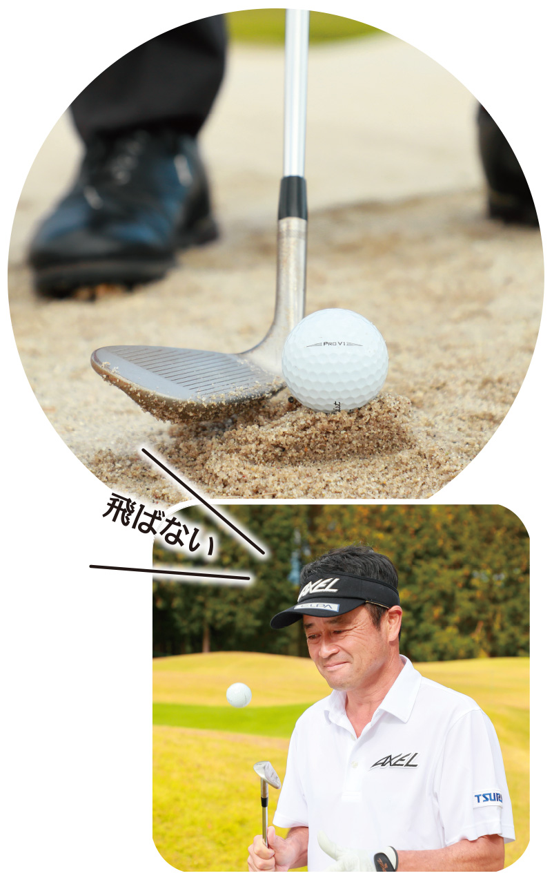 横田 いや、フェースを被せても引っかかりませんよ。バンカーは砂を爆発させて飛ばすので、フェース面の向きはあまり関係なくて、ボールは飛んで行く砂と同じ方向に飛ぶんです。だから、フェースを開いた場合でも、ボールは右には飛びません。そういうことも遊びでやってせん。そういうことも遊びでやってみるとよくわかりますよね。