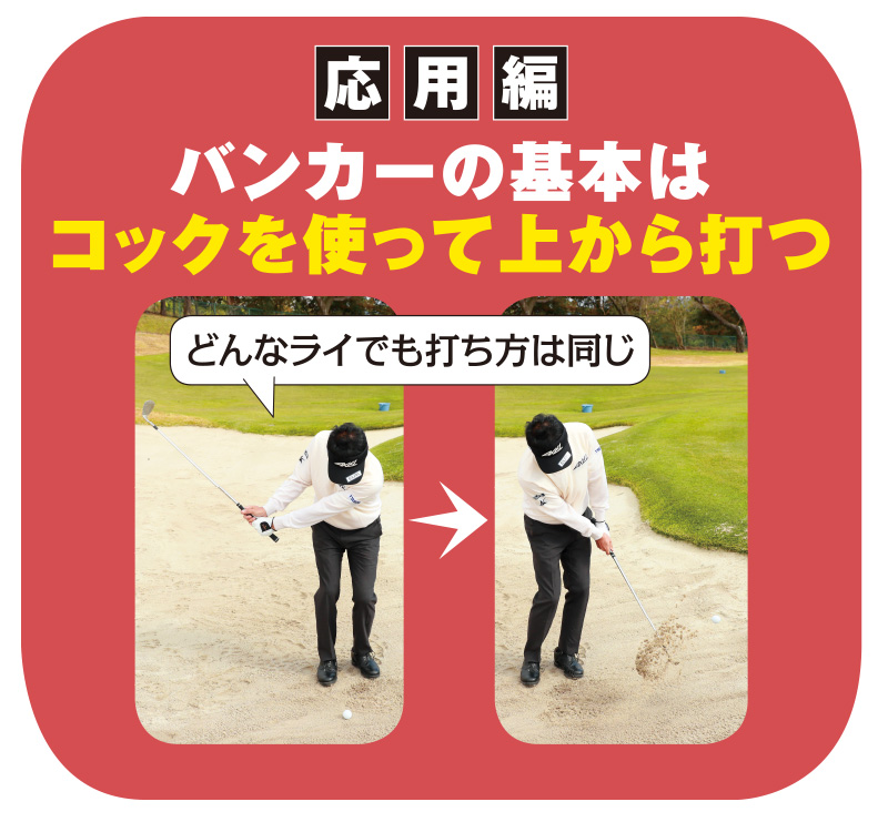 バンカーの基本はコックを使って上から打つ
