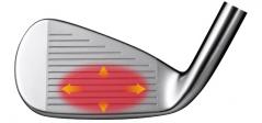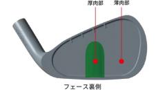 フェース裏側の打点周辺部を薄肉化することで、反発性能を高め、アイアンでの飛距離アップを可能にしている。