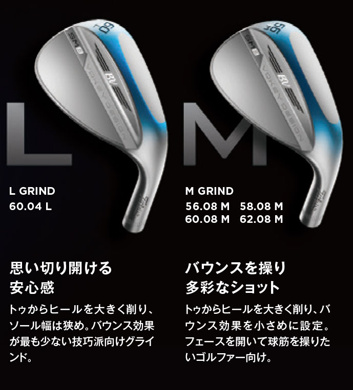 進化したプログレッシブCGによるヘッド重心と打点のマッチング効果に加え、選び抜かれたバウンス角、ソールグラインドを最適に組み合わせることで、各ロフトに求められる飛距離と弾道安定性を格段に向上させた。使用アイアンに応じた的確なウェッジコンビネーションをすることで、スコアリングショット領域でのパフォーマンスが向上、スコアメイクが容易になる。