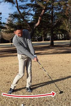 シャフトの長さが変われば、クラブのライ角も変わります。シャフトの長いフェアウェイウッドはボールから離れて立つ感じとなり、スイングの軌道が横型に近くなります。