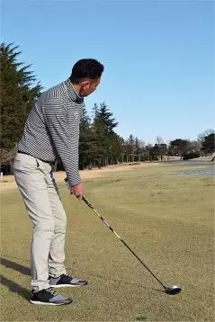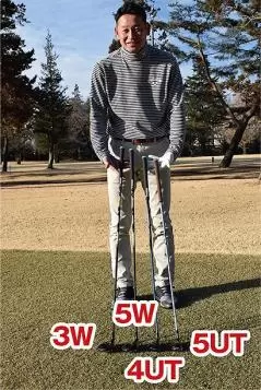 - シャフトが長いフェアウェイウッドはボールから離れて立つ感じとなり、短いユーティティクラブはフェアウェイウッドよりもボールの近くに立って構える
