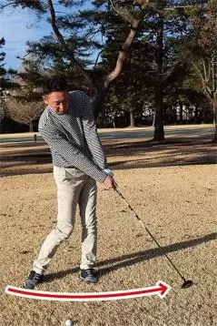 シャフトの長さが変われば、クラブのライ角も変わります。シャフトの長いフェアウェイウッドはボールから離れて立つ感じとなり、スイングの軌道が横型に近くなります。