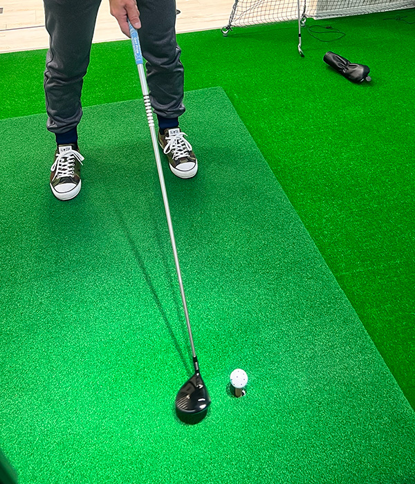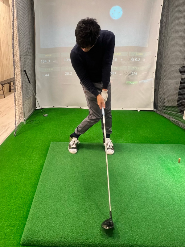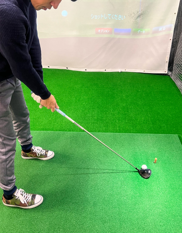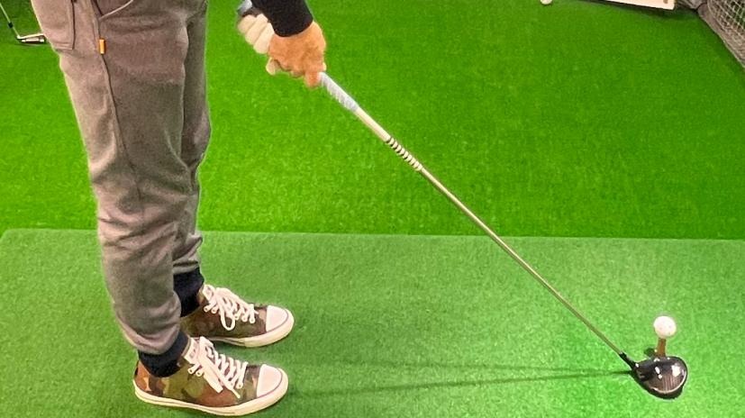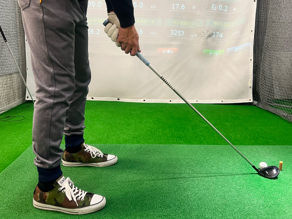 両足を閉じて頭を動かさず手打ちで綺麗に当てる。腕をしっかり振ることもウッドでは知っておくべき感覚です。